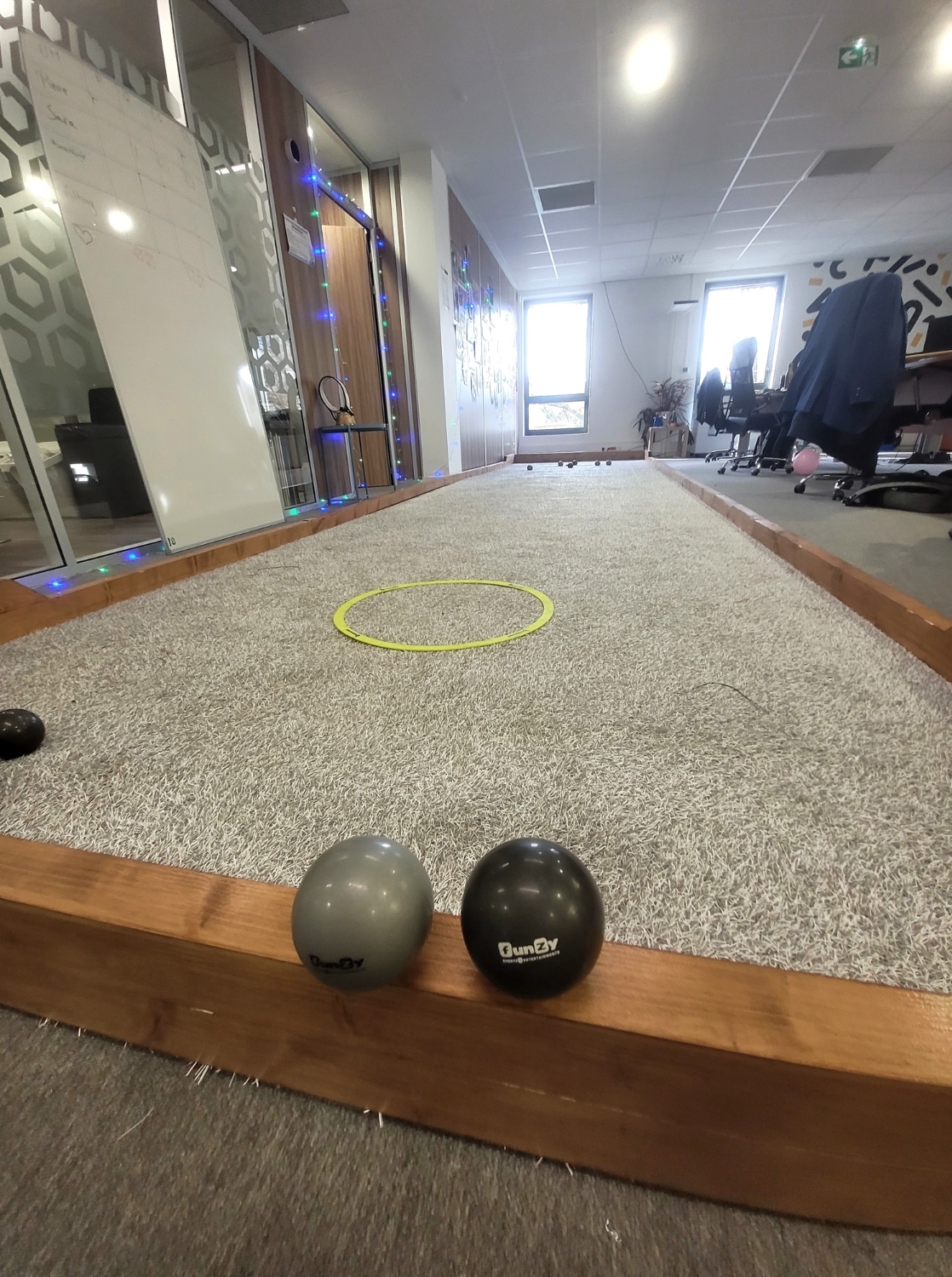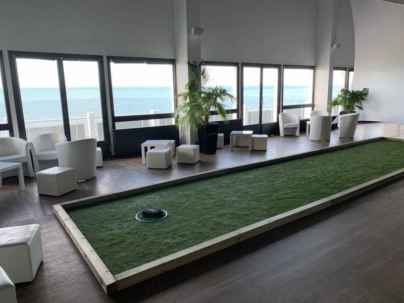 C’est une solution idéale pour les espaces de pause, les halls ou les salles de réunion transformées le temps d’un après-midi en boulodrome convivial.